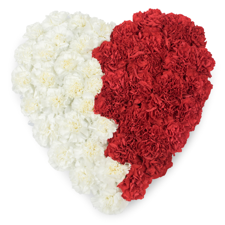 Discover the perfect blend of elegance and sentiment with our heart-shaped bouquet featuring vibrant red and pristine white carnations. Each flower is meticulously hand-selected for its freshness and natural beauty, ensuring a luxurious presentation that speaks volumes. The striking red carnations convey passion and deep emotion, while the delicate white blooms symbolize purity and grace. This stunning arrangement is designed to be a thoughtful, meaningful gift for any special occasion.